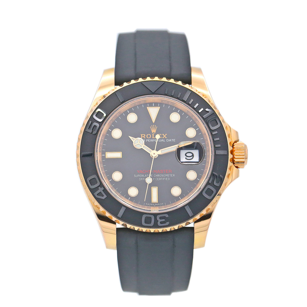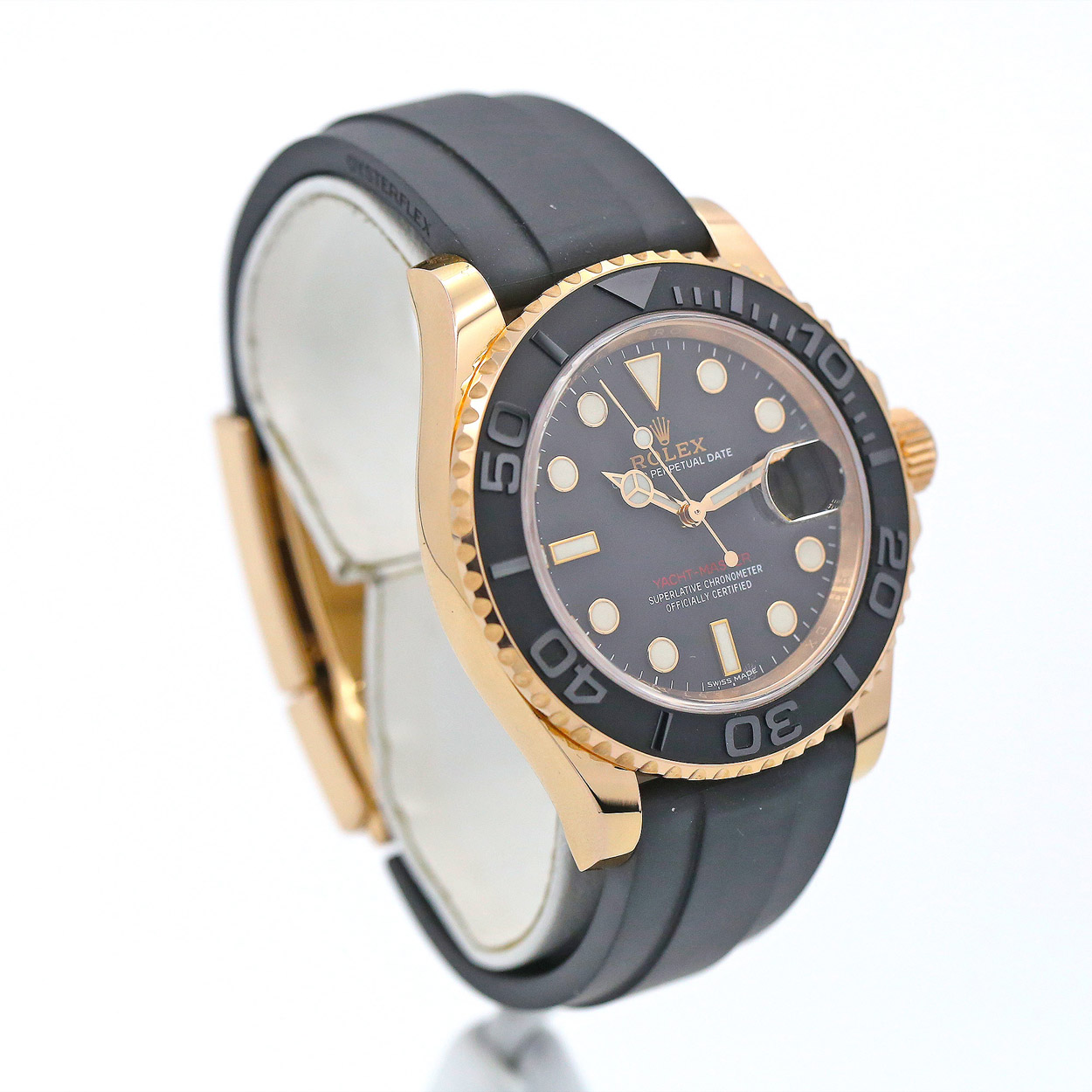 268655 Used Black Rubber Rolex Yacht Master I Rose Gold Essential Watches